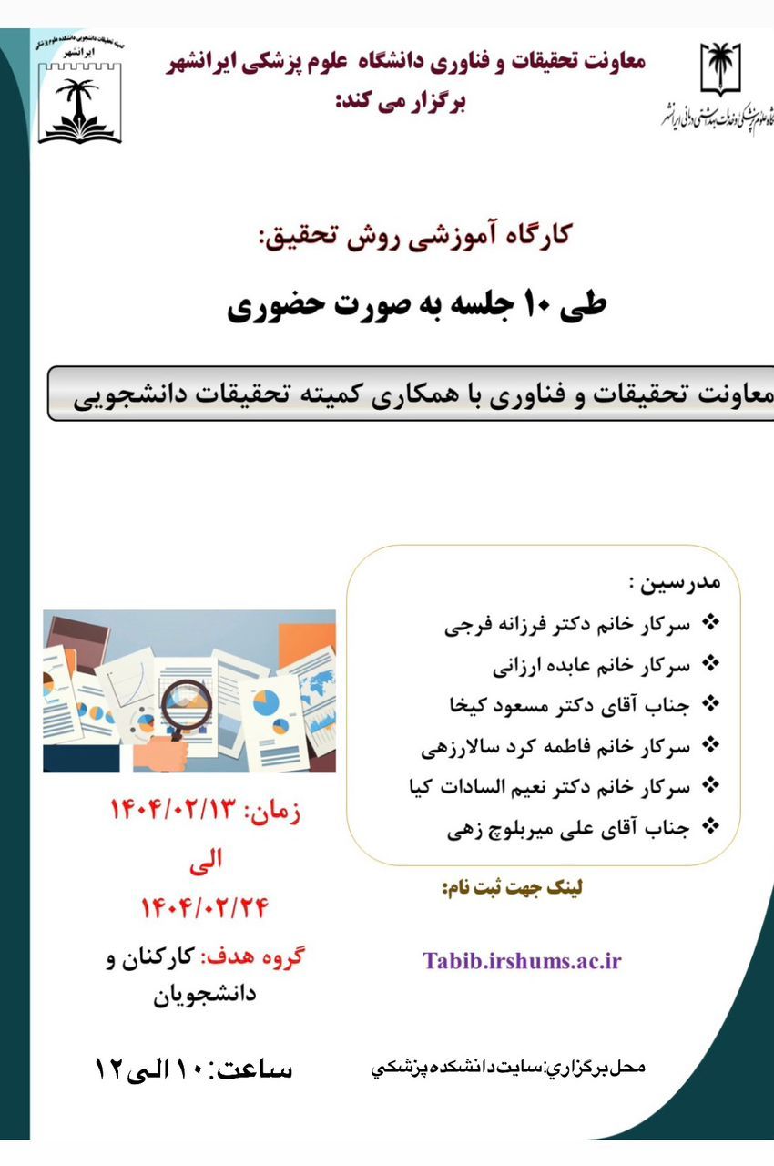 معاونت تحقیقات و فناوری با همکاری کمیته تحقیقات دانشجویی دانشگاه علوم پزشکی ایرانشهر برگزار میکند: